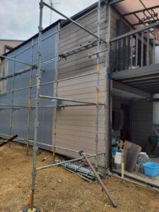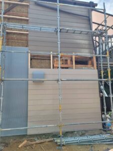 こちらは既に木下地を組み、外壁を張っている作業の様子です。