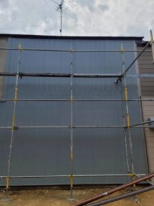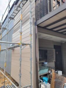 ▷大阪府岸和田市にて外壁板金工事〈隣家補修に伴う外壁張替え工事〉
