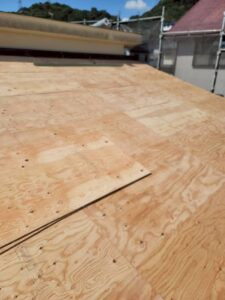 まず、屋根の下地となる野地板を張ります。