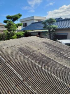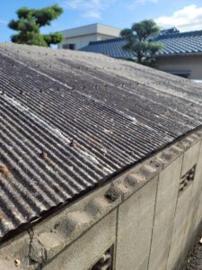 台風の影響で捲れている部分以外も経年劣化が進んでいます。