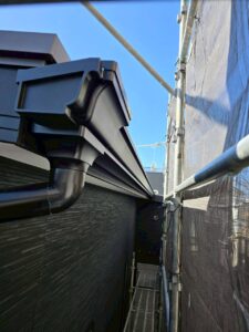 その後、雨水の流れを考慮しながら雨樋を取り付け、適切な勾配を確保しました。