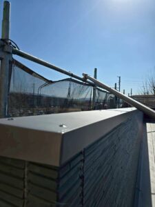 加工した笠木を設置し、防水性を確保するために接合部や端部の納まりを丁寧に施工。