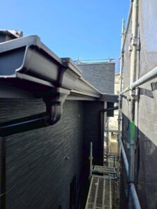 その後、雨水の流れを考慮しながら雨樋を取り付け、適切な勾配を確保しました。